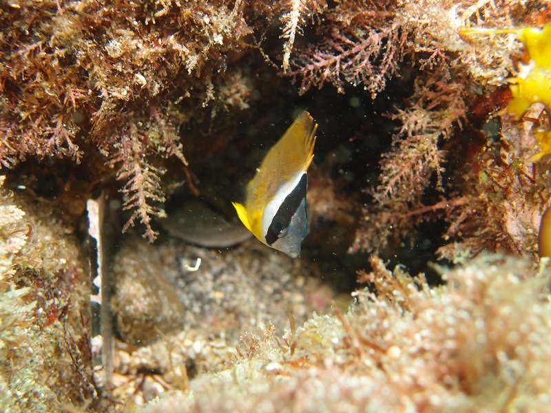 ナガサキスズメダイのチビ、チョウチョウウオのチビ、コケギンポなどなど
