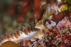 今日はいい天気に回復しました~。海は少しうねりがありましたが、ダイビングには影響ない程度でした。透明度がまた格段にアップしましたよ~キレイでした♪春にごり・・・終わり??ダンゴウオは毎日コロコロ場所を変えるので、探すのに必死です(笑)でも、結構数はいますよ~!!天使の輪も5個体、大人ダンゴも3個体見てます。黄色のカエルアンコウ幼魚はかなり育ってその成長の早さにびっくりです。きのう見つけた黒いカエルンコウ幼魚はまだ1センチくらいのミニサイズでとってもかわいいですよ♪ニシキハゼも幼魚をよく見かけるようになりました、体が透明でとってもキレイです。ウミウシもたくさんいます!!浅場にはミギマキやタカノハダイの幼魚がいてかわいらしいです、大人をそのまま縮めたようなミニサイズがとってもかわいいですね♪透明度もあがってるので気持ちよく潜れますよ、GWのご予約もお待ちしております!!