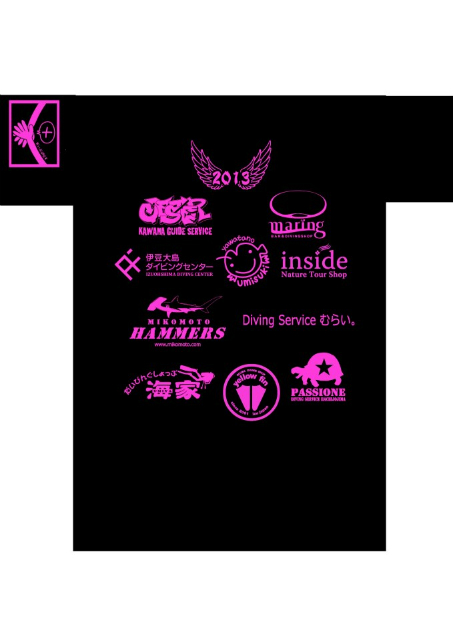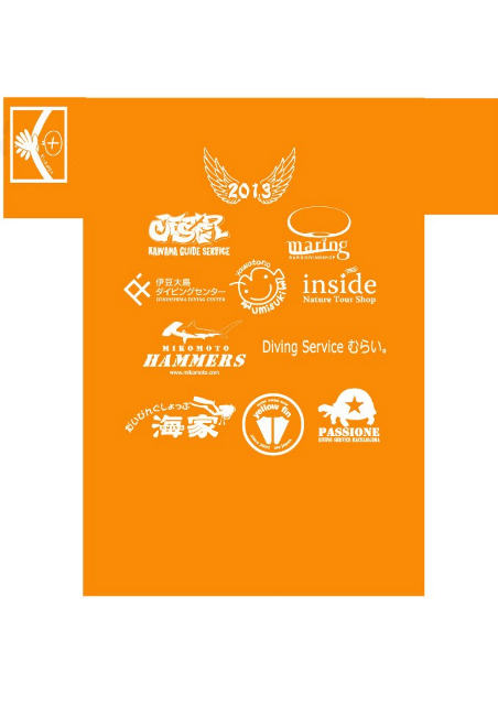 人気ダイビングショップのロゴが1つのTシャツに並んだ素敵なTシャツです。