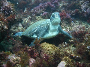 きょうは北東の予報で海は少々波がありました。エントリーエキジットさえ気をつければ全く問題なしです。海の中のほうが暖かいし風なし快適でした!!秋の海って感じです。1本目カメ狙いでいきましたが・・・なんとハズレ・・最近、はずしたことなかったので超びびりました。みんなに聞くところ、追いかけられてた・・・との情報が・・そりゃないぜ!みなさんカメちゃん大事にお願いしますね♪2本目はちゃんといました。スージーです☆なんと愛くるしい表情でしょうか!!ダイバーを見てますよね~そのあと息を吸いに行って、いっしょにながーーく泳ぎました。泳いだ後は、甲羅をゴシゴシお掃除、岩にはまっているようにみえますが、お掃除しているだけなので安心してくださいね。フリソデエビもケンザイ。イソギンチャクについているエビも多くなってきました。奥ではアジにワラサが5匹でアタック!びっくりでしたよ。水曜日は川奈オープンです。北東が吹かないように祈ってくださいね。