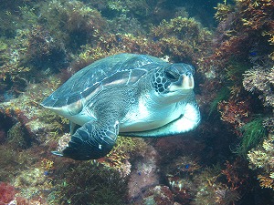 スイぃ~と今日もいい泳ぎでございます!!スジ君、絶好調でございます♪後半はカメちゃんも現れて、みんなでスィィ~とないい気分ですね♪帰ってきたお客様に感想を聞くと、カメはもうお腹いっぱい!だそうで・・・今日もじっくり、ゆっくり観察できました。もう川奈の海でアオウミガメに会える確立は ずばり!!100%です!!午後は赤根チームとビーチチームにわかれてダイビング、赤根は、黒潮の影響であったかい潮が着ました。そして蒼い海がやってきました!!が・・・しかし・・水深12m付近から・・・若干透明度が落ちました
