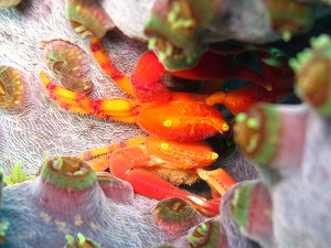 写真のベニサンゴガニですが、なんとお腹に卵がありますよ!!すごいシーンですね。下の子についてます。じっくり見てください!!キレイなアジの群れ・キビナゴ・カマス・スズメダイ・クマノミ・ミツボシ・イトフエフキのyg、アイゴの群れ、今日はいいこのジョーフィッシュ・オドリカクレエビなど、砂地も岩地も、カメちゃんもいい感じです。ぜひ、平日のんびり遊びに来て下さい。