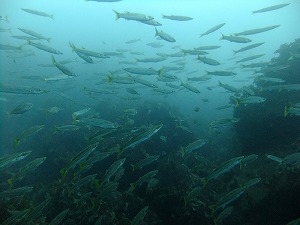 今日はどんよりな空で雨もたまにパラパラと。水面は軽く風波がありましたが、ほんとに表面だけで、浅場でもじっくり写真が撮れるほどに中は穏やかでしたよ。透明度もエントリー口で顔をつけた瞬間から素晴らしい青い海。サイコーでした~、3本ガッツリ潜ってきましたよ~。1本目は砂地。私たちの他にファンダイブチームはいなかったのでほぼ貸切状態。おかげでハゼが出てる出てる!ヒレネジは2個体。2個体ともと~っても寄れたのでゲストさんはかなりいい写真を撮られてました~。ハチマキダテハゼも大きい!テンス幼魚やウミテング、シマヒメヤマノカミなども見てきました。2本目は岩地で群れ狙い。カマス・アジがものすごい~~~♪見とれてしまってしば~らくその場から移動できませんでした(笑)今日のミナミギンポのミナミちゃんは怖かった。まわりにソラスズメダイが群れていたのですが、それが気に入らないらしく、出てきて噛みつきまくり!あんなミナミちゃん見たことないよぉ~(^^;3本目はビーチの奥へ行ってきましたよ~。ミチヨミノウミウシやアカホシカクレエビを見てきました~。3本でもまだまだ回りきれないくらい、ビーチ楽しいです♪