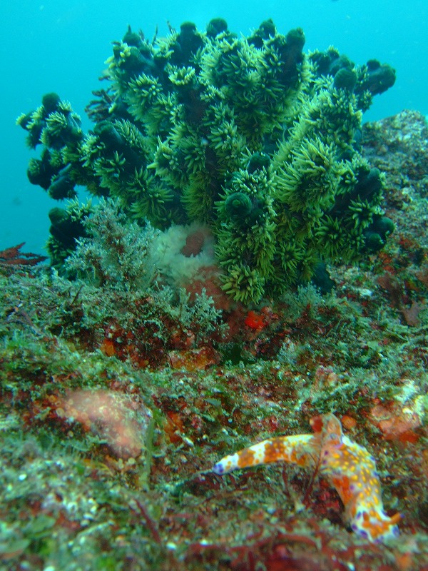 相変わらず、スズメダイ・クロホシイシモチ・タカベ・カマスの群れも多くて、岩地の上をのんびり泳ぐのも
