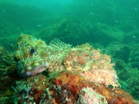 今日は朝方は曇り空が広がっていましたが、潜るころから日差しがではじめ、現在は晴れ間が広がっています! そんな川奈です 海は冷たい潮が入っていますが、少し上に行けば、あったかい層があるので、問題なし! そして冷たい潮の影響で、透明度は10~12mの場所もあり、快適にダイビングが楽しめます♪ 生物が見える、見える(笑) そんな中、鬼頭さんチームが見つけてきたのは、カサゴとオニカサゴ・ ...