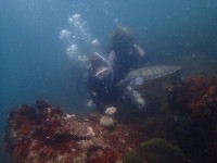 今日は久しぶりにカメアタックしてきました!! ここ最近、ハーフボートブイの奥のお家にいるとのことですが・・・ 果たして結果は・・・ 見事!GET~!! やたーーーーー! ちょっと一緒に泳いでくれました♪ かわいかった~!! 群れでは、キンギョハナダイ・スズメダイ・ウミタナゴの群れがウジャウジャでした! 透明度も6~8mぐらいあり、天気も良かったので、いつも以上にきれいでした ...