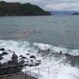 今日はそんなに風が吹いていたわけではないのですが、朝からうねりがかなり大きく、潜水禁止になってしまいました(><) 画像は朝の状態です。 午後になってだいぶうねりがおさまってきました。