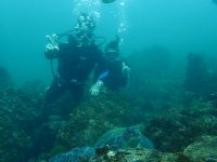 台風が過ぎ去り、朝から意気揚々と海に下ってきましたが・・・・ 北東の風が。 オープンの講習組さんはプールへ、ファンダイブ組はとりあえず1本目ウミガメちゃん 狙いでエントリーしました。入ってしまえば水深12m以深はスコーンと透明度も抜けていて 快適!浅場はやっぱり風の影響で揺れてました。 浅場は揺れていたけど、群れの魚がとにかく多いです。アジ・イサキ・タカベ・ムツ スズメダイ・タ ...