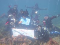今日は透明度がぐーーーーーーーーんと上がって見えているところは15m位あるかなぁ。 水中が明るいとテンションもあがりますね!! ちょっと冷たい潮ですが透明度がいいのは気持ち良い♪アオリイカもよーく見えるし(笑) 連日好調な産卵ですが今日は更に大ヒット。 3ヶ所にばらけていたアオリイカ達が、1ヶ所の産卵場所に集まってきていたようで 今日は11ペア22匹が確認できました。ちゃんと数え ...