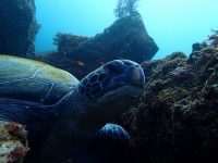 今日もいい天気ですね! 海も透明度がよく、コンディションはいいです♪ 生物も豊富! 最近、人気が高いのは、イロカエルアンコウのチビ、ニシキフウライウオです どちらも甲乙つけがたい程、かわいいです♪ その他にも、ガラスハゼとビシャモンエビのコラボや 今年から見れ始めた、チビガメのゼニガメちゃんなどのリクエストも多いです ちっちゃいウミガメなのに、この水温もへっちゃら!バ ...