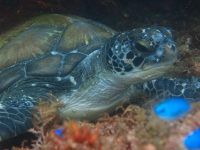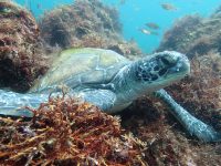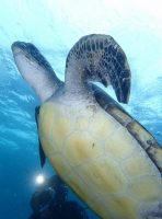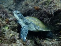 今日は北東風の影響により、川奈では潜れないと思いきや・・・ なんとか、潜れました~!! 水面はちょっぴり、ざわついていましたが、中に入ると、なかなかキレイな海でした♪ そのため、サカナの群れがとっても気持ちよくて、泳いでいるだけで幸せを感じました! 海が荒れてもまったく動じない、ウミガメたち! そりゃ、もう居着いてから5年目を迎えるウミガメですからね! でも、新しいウミ ...