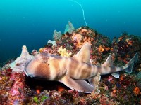 今日は天気は下り傾向にありますが、相変わらず、抜群の透明度です なんだか昨日まで、ボートポイントの「平根」がすっごくおもしろいとのことでしたので、 ボート行ってきました!! 平根は噂通り、すっごく楽しい海でした♪ エントリーして数分泳いだだけで、まずネコザメが登場!! みんなで仲良く撮っていると・・・ なんと、数m泳ぐだけで、1匹2匹と次々と見つかるネコザメ達 合計5-6匹の ...