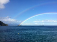 今日は朝からすごい雨風で、出勤するのも大変だった・・・ 道にちっちゃい木が倒れてたり、小枝がまきびしのようにあったり・・・ 川奈に到着して海に入ろうにもこの雨風ではね・・・ そんなこんなで、なんか今日は雨がすごく嫌だったのです でもね、そのうちに雨もすっかり止んで、きれいな「虹」が顔を出してくれました!! 思わず、スマホとデジカメを持って、写真撮りに行ってきちゃった こ ...